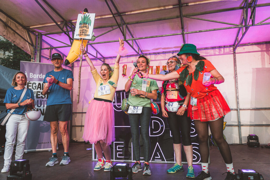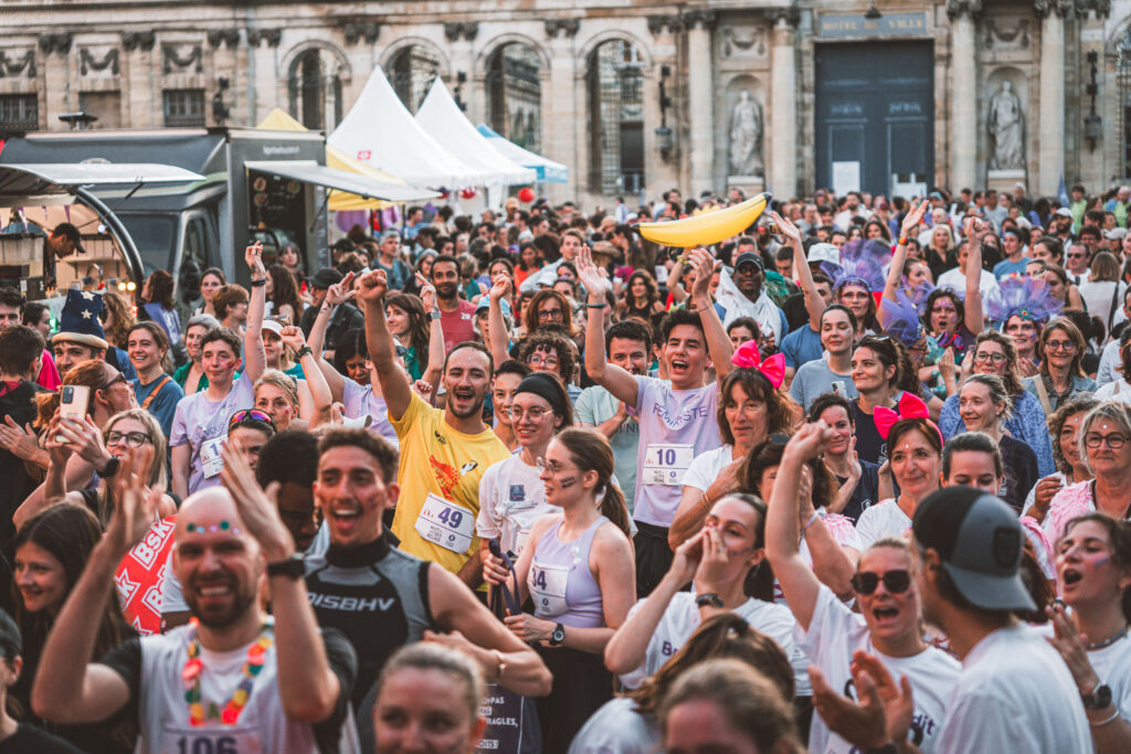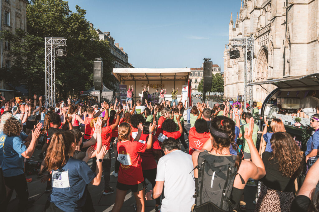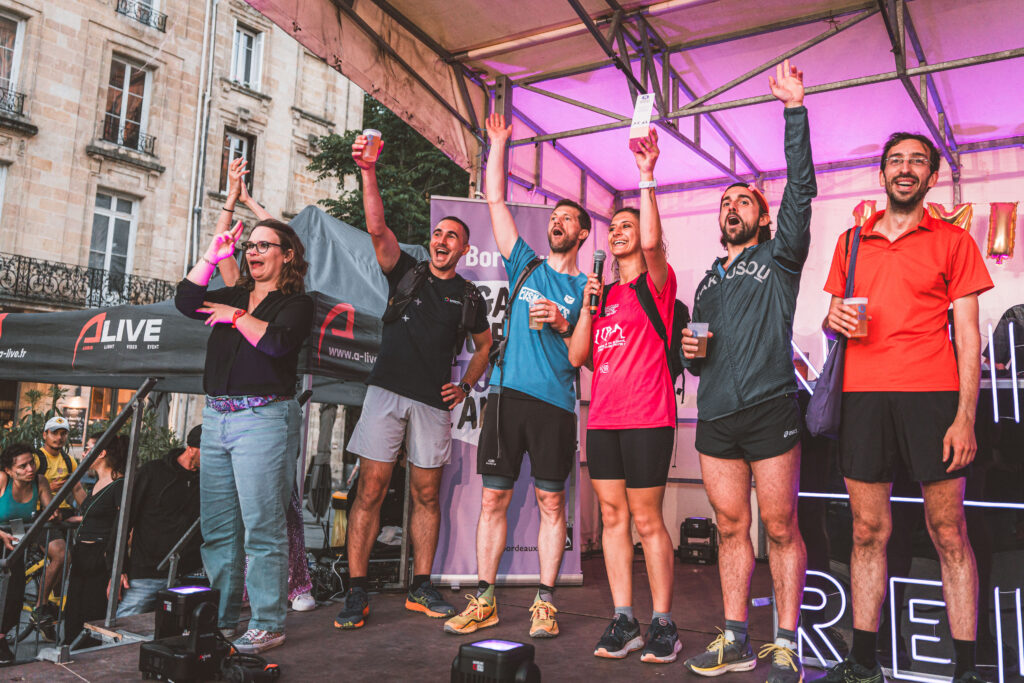 Pendant une heure, chaque équipe, ayant collecté 500€ pour les droits des femmes, se relaie sur un parcours inédit au cœur de Bordeaux.
